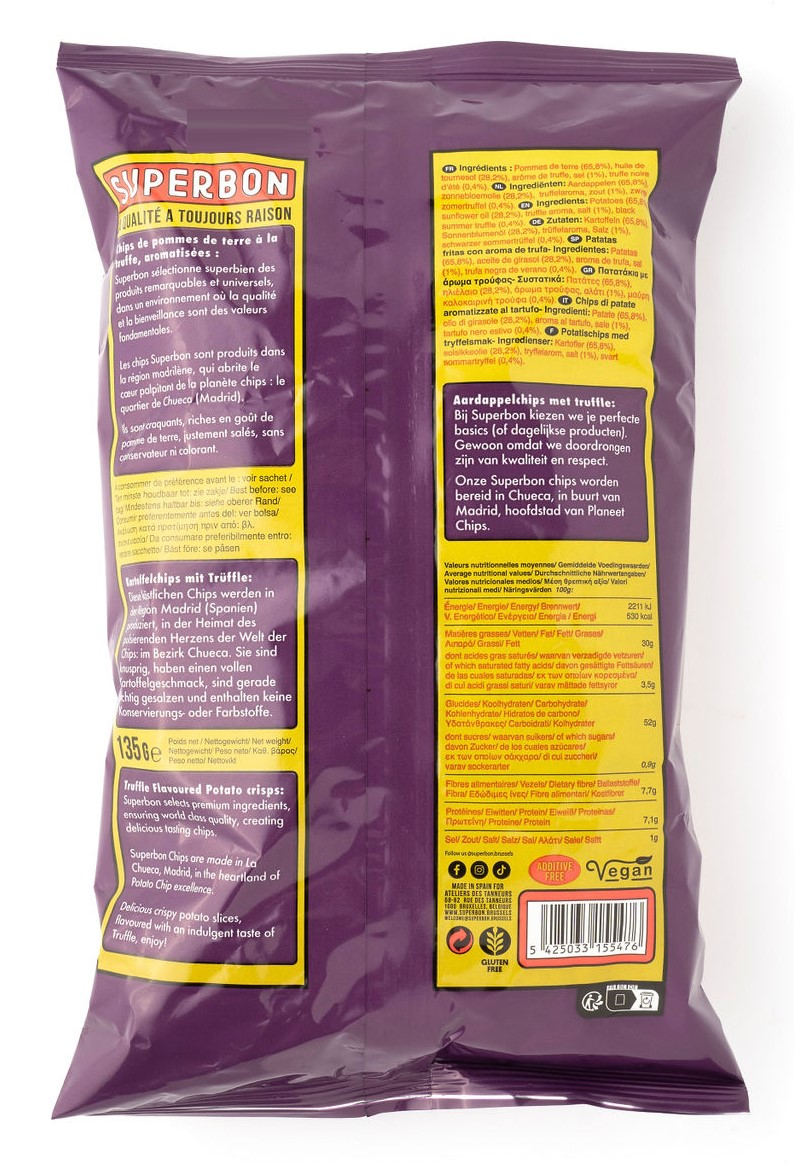 Произведенные в Испании, чипсы Superbon отражают средиземноморские традиции качества и вкуса, используя только высококачественный картофель и лучшие специи. Благодаря идеальной обжарке, каждый чипс имеет золотистую хрустящую текстуру, которая делает употребление этих чипсов истинным наслаждением.