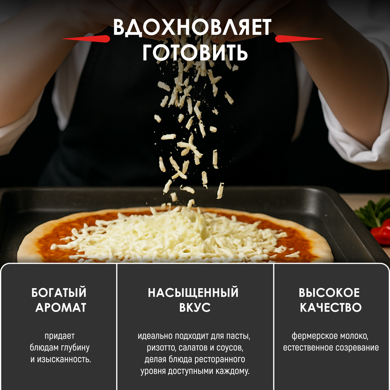 Натуральный твердый сыр. Благодаря длительному, более 6 месяцев, естественному созреванию вкус становится более ярким и насыщенным, с фруктовыми нотами и чуть пряным послевкусием, а текстура приобретает характерную ломкость и плотность. Нарезка на толстый слайс подойдет для горячего тоста и бургера. Вкусно при запекании в духовке – пикантный вкус и аппетитная корочка.