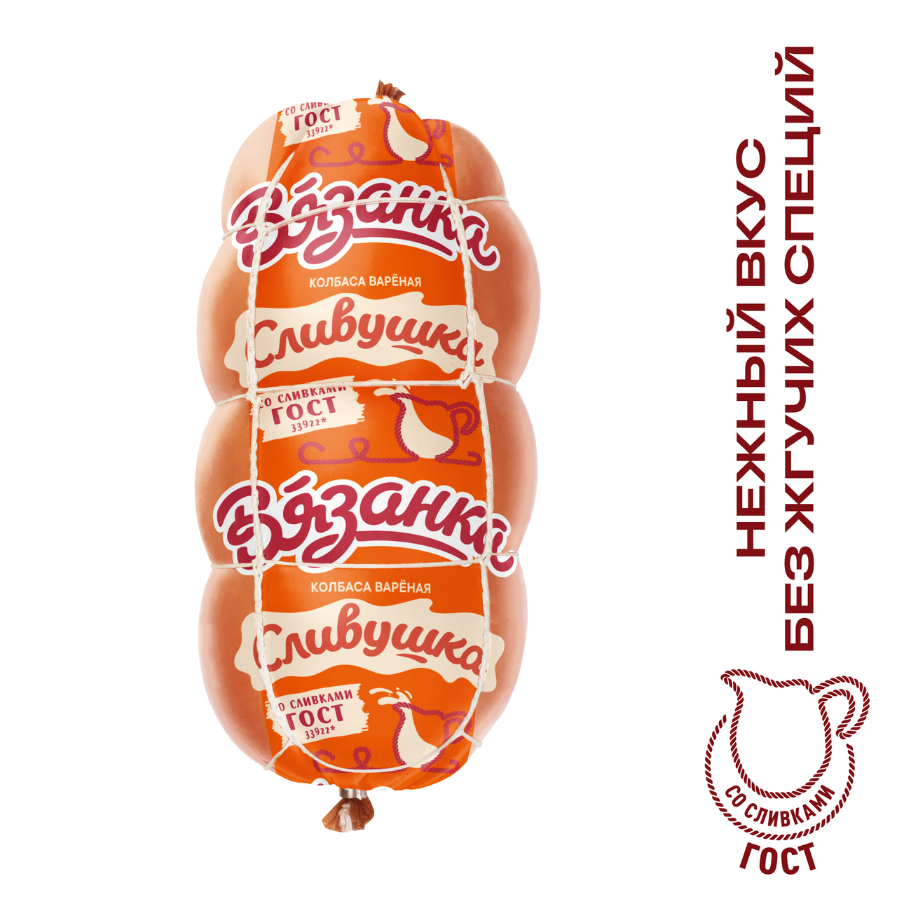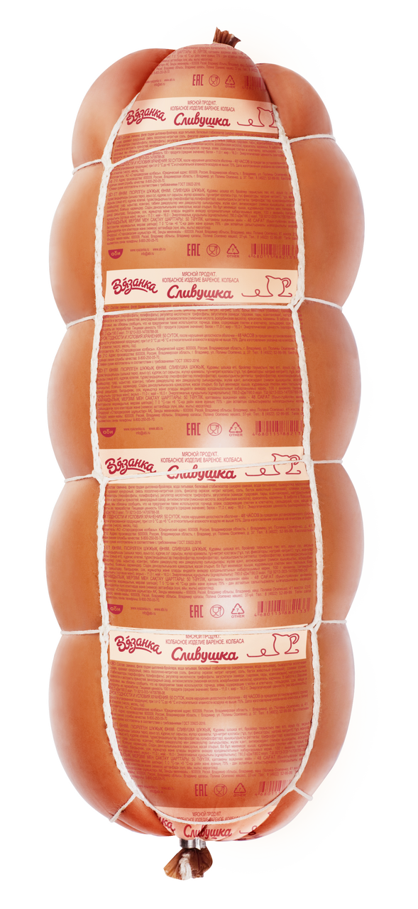 Колбаса вареная Сливушка от Вязанки обладает нежным вкусом и не содержит жгучих специй. В ее составе натуральное качественное мясо, нежнейшие сливки и сбалансированный букет легких пряностей, что позволяют мамам вкусно, быстро и полезно накормить всю семью. Колбаса с приятным нежным вкусом. В ее составе натуральная свинина и филе курицы, а также пряности для придания вкуса и аромата. Этот привычный продукт питания подходит как для стандартных бутербродов на завтрак, так и для приготовления разнообразных салатов, закусок. Обжаренные на сковороде ломтики колбасы отлично сочетаются с яичницей, кашами и картофельным пюре.