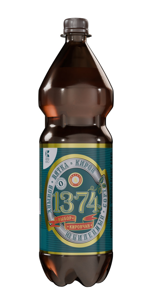 Мягкое пиво с тонким хмелевым ароматом. К 650-летию Кирова завод Вятич сварил новый сорт - мягкое, ароматное пиво. 1374 Юбилейное было создано в результате конкурса, в котором более тысячи кировчан выбрали название, дизайн этикетки, и вкус напитка.