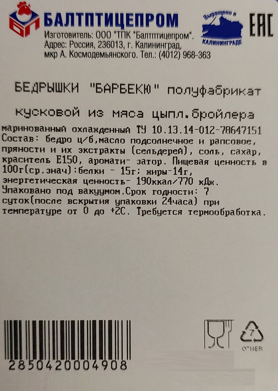 Бедрышки цыпленка-бройлера Балтптицепром барбекю охлажденные, ~1.3кг