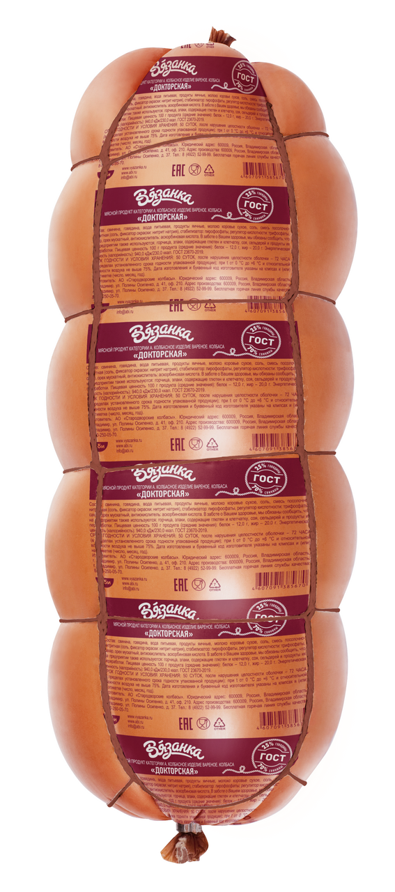 Колбаса Докторская ГОСТ от Вязанки — излюбленный мясной продукт мам и детишек для приготовления легких закусок, различных салатов, сэндвичей, пиццы. Нежная, питательная, ароматная, с безупречным мясным вкусом. Она вызывает восторг у детей и взрослых! Вареная колбаса изготовлена по традиционной строгой рецептуре ГОСТ. Ее аромат и вид пробуждают аппетит. Отсутствие консервантов делает ее правильным и полезным выбором для детей и всей семьи.