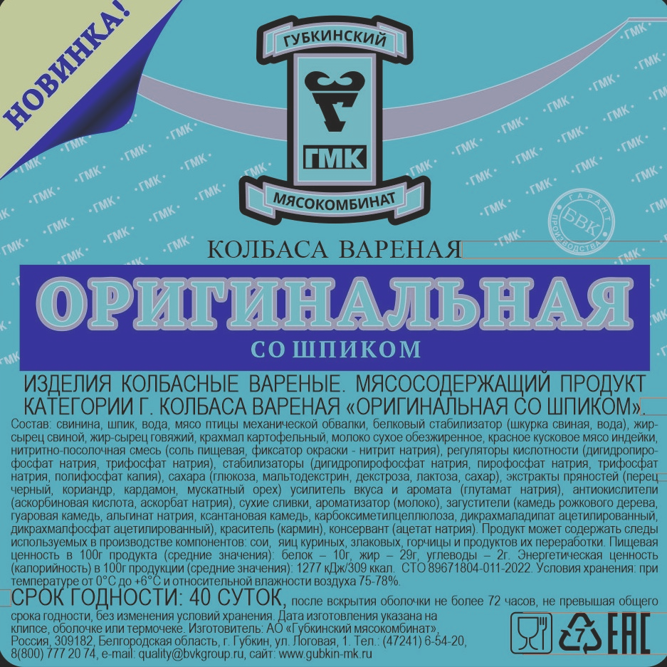 Колбаса со шпиком ГМК оригинальная вареная, ~1кг