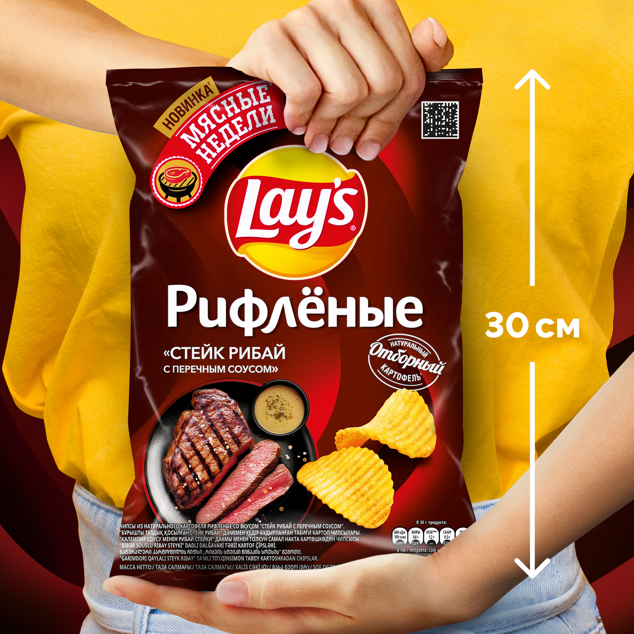 Lay's- чипсы, каждая пачка которых изготовлена из специально отобранного картофеля и соответствует самым высоким стандартам качества.Чипсы Лейс со вкусом стейка Рибай с перечным соусом - это яркий мясной вкус в сочетании с хрустящими чипсами из натурального, отборного картофеля.Каждый день вкуснее с Lay's.