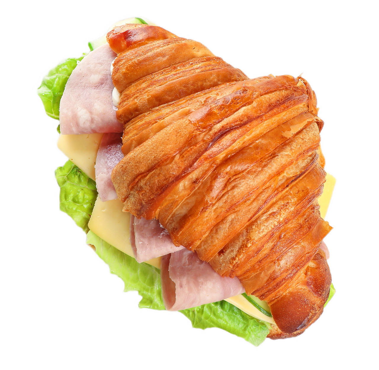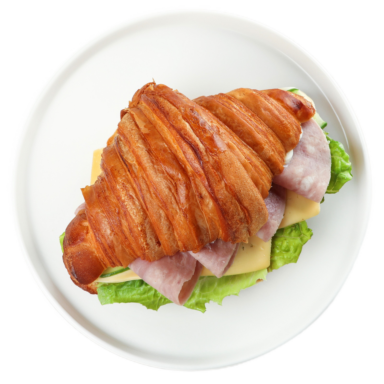 Круассан с ветчиной и сыром.Хрустящий круассан, ароматная ветчина и нежный сыр - идеальное сочетание для быстрого и вкусного завтрака или сытного перекуса.