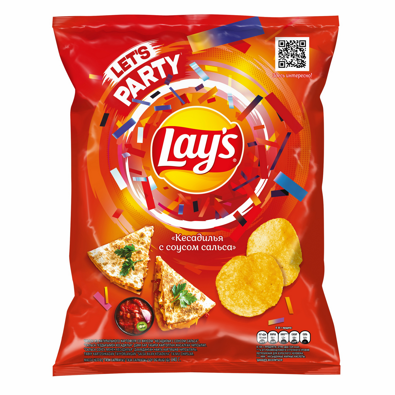LAY'S— чипсы, каждая пачка которых изготовлена изспециально отобранного картофеля исоответствует самым высоким стандартам качества. Хрустящие илегкие навкус картофельные чипсы LAY'Sбыли созданы, чтобы вызвать улыбку налице каждого человека, поэтому ими так приятно делиться случшими друзьями. Чипсы LAY'S, несомненно, скрасят ваш день!
