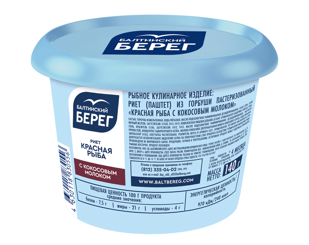 Риет Балтийский берег Красная рыба с кокосовым молоком, 140г