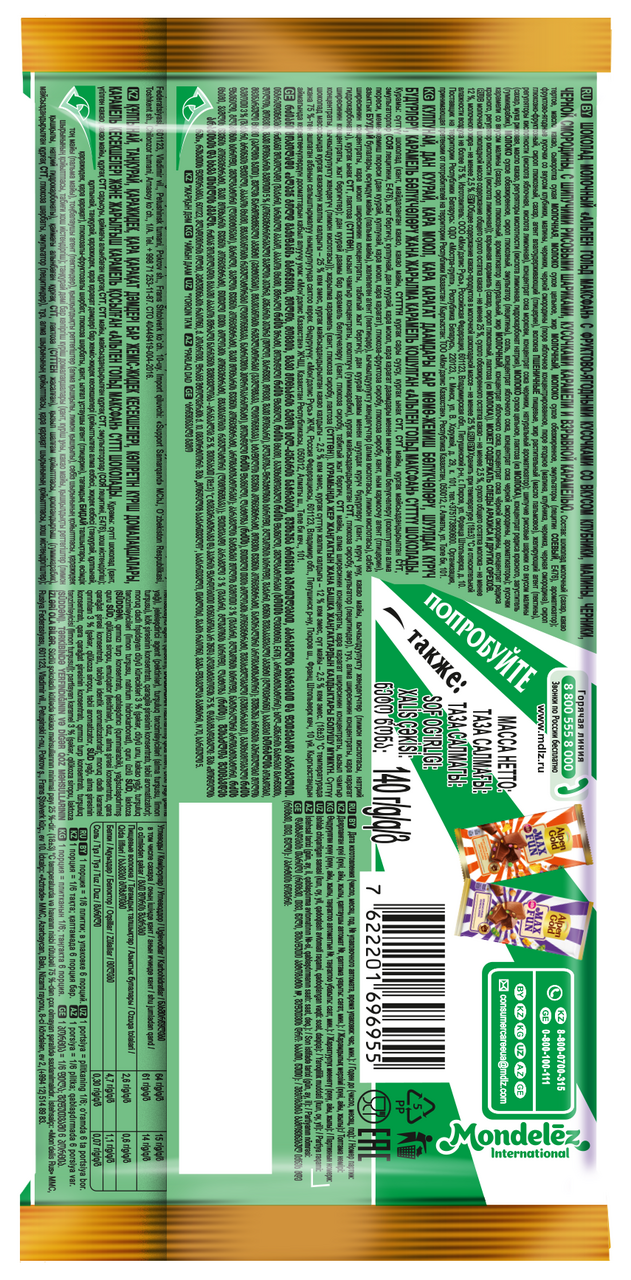 Участвует в конкурсе: Выиграйте кофемашину на сладкое! Совершите покупку товаров-участников на сумму от 1500₽ с 23 октября 2025г. по 14 января 2026г. и получите шанс выиграть кофемашину или другие сладкие призы! Чем больше покупок - тем больше шансов на победу! Подробнее об акции - https://cdn.metro-cc.ru/ru/mndlz_2025.pdf. Alpen Gold уже более 25 лет радует ценителей шоколада необычными вкусовыми сочетаниями. Alpen Gold Max Fun — это сюрприз в каждом кусочке: никогда не знаешь, что попадется именно сейчас. Нежный белый шоколад дополнен сочными фруктово-ягодными кусочками со вкусом клубники, малины, черники и черной смородины. Взрывная карамель и шипучие рисовые шарики добавляют вкусу яркости и веселья, поэтому точно не дадут скучать! Шоколад белый Alpen Gold производится по высоким стандартам качества из какао-продуктов. Шоколад с мармеладом заряжает отличным настроением и приглашает к вкусным открытиям. Alpen Gold Max Fun — это яркие миксы из молочного шоколада, взрывной карамели, шипучих шариков, мармелада и фруктово-ягодных кусочков. Попробуй все вкусы Alpen Gold Max Fun: жуй, хрусти и выбери из них свой любимый! Большой плитки шоколада Alpen Gold Max Fun хватит на целую компанию друзей: его можно взять с собой на учебу, в гости или на вечеринку. Яркий вкус веселья вместе с Alpen Gold!