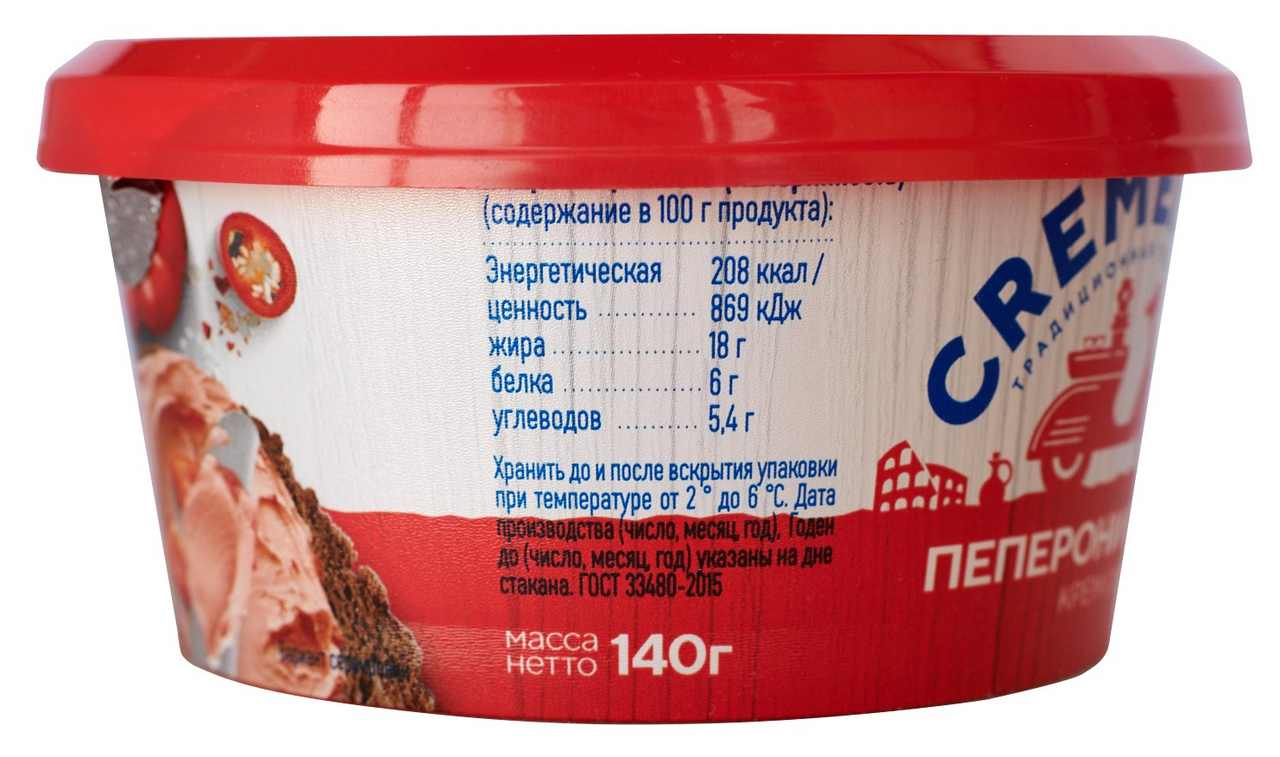 Сыр творожный Cremeitali крем сыр пеперони и чили 60%, 140г