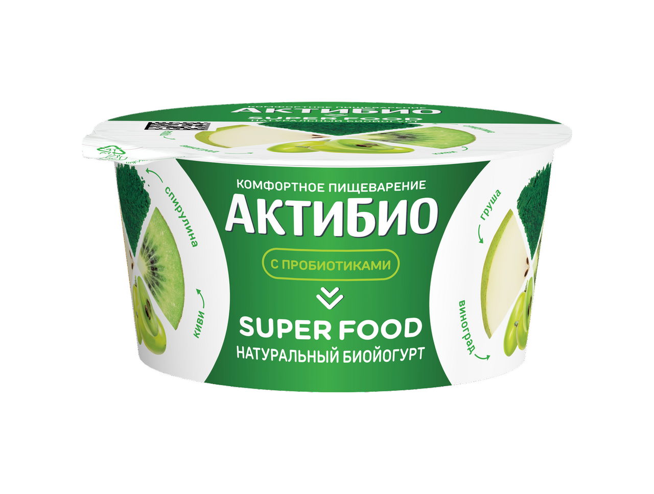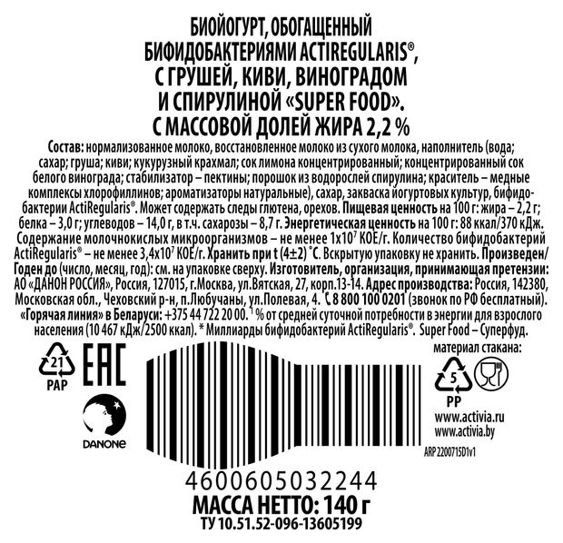 Йогурт Актибио груша-киви-виноград-спирулина 2.2%, 140г