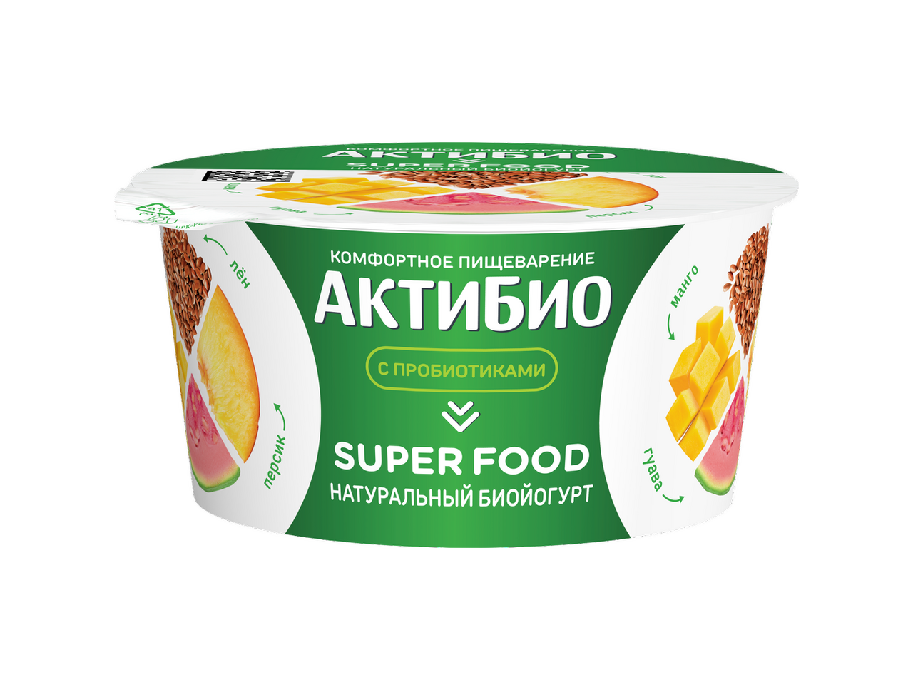 Йогурт Актибио персик-манго-гуава-лен 2.2%, 140г