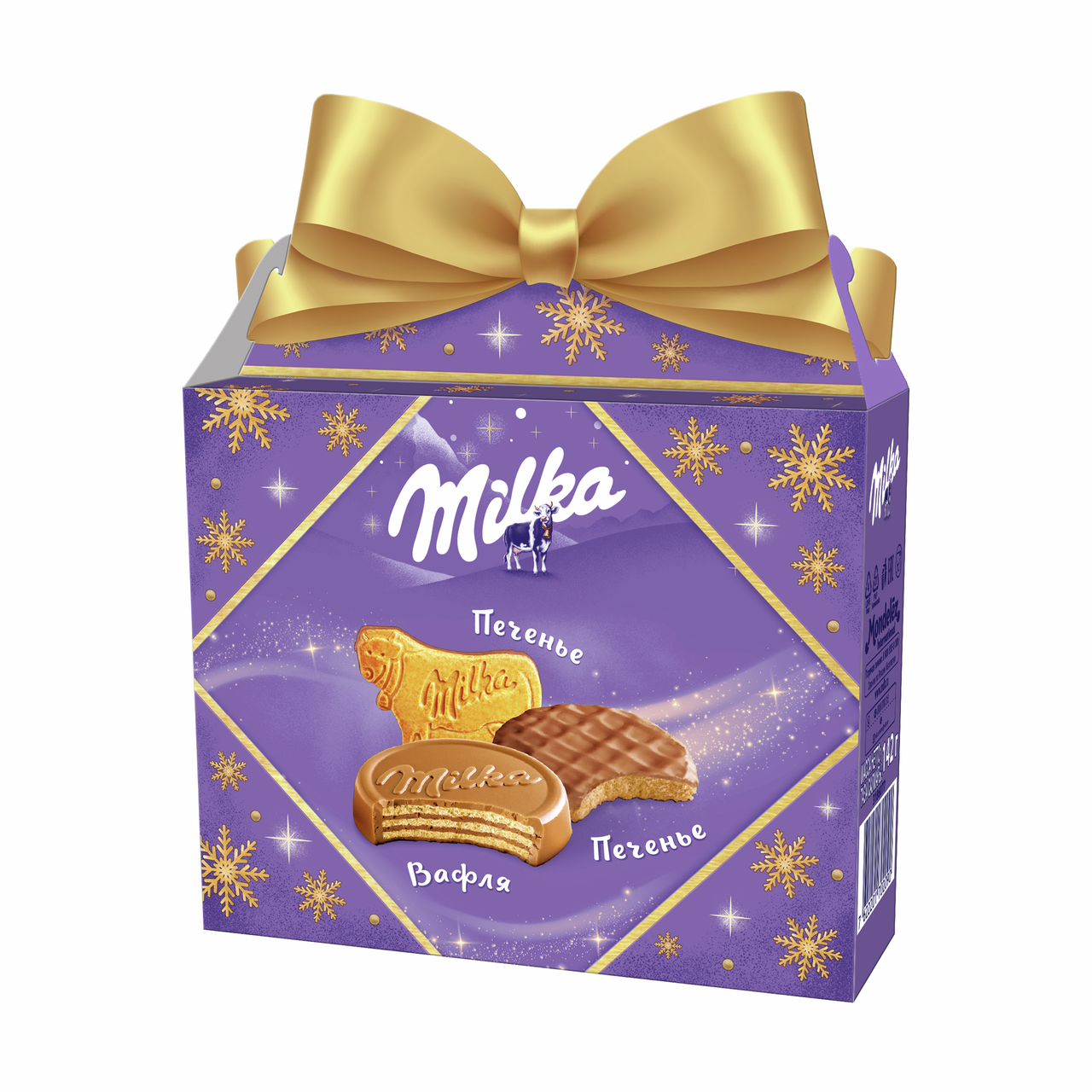 Набор подарочный Milka Biscuits Ассорти печенье-вафли, 142г представляет собой вкусное и аппетитное лакомство, которое придется по душе как маленьким, так и взрослым сладкоежкам. Внутри набора находится четыре нежных бисквита с соблазнительной начинкой, насыщенным, ярко выраженным вкусом и приятным ароматом. В состав входят ингредиенты высокого качества. Угощение не содержит искусственных красителей, консервантов и других вредных добавок. Десерт подарит хорошее настроение, заряд энергии, сил на весь день. Он идеально сочетается с чашкой горячего напитка – чая, кофе или какао. Лакомство может стать хорошим вариантом украшения десертов – тортов, пирожных, мороженого, вафель и многого другого. Набор выпускается в прочной картонной упаковке, надежно защищающей содержимое от негативного внешнего воздействия. Она отличается интересным дизайном и компактными размеры, что позволяет брать угощение с собой в дорогу.