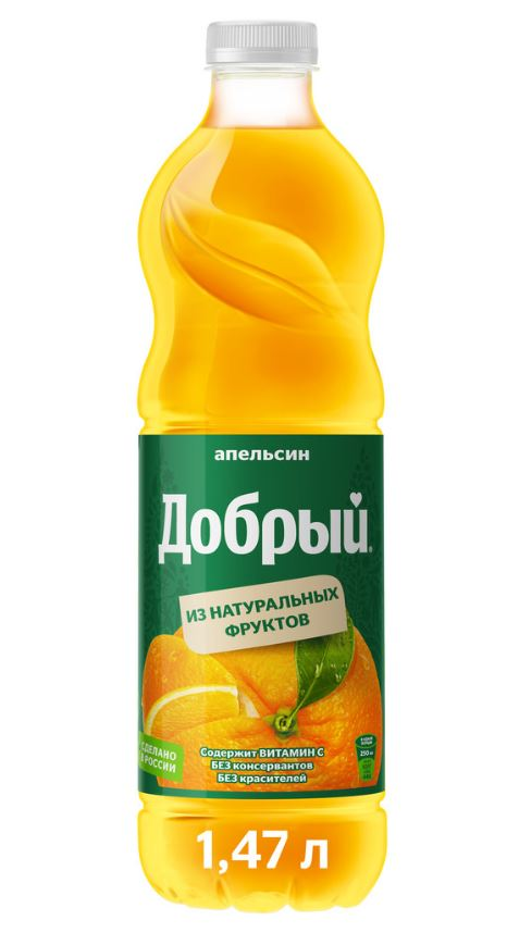 Нектар Добрый апельсин, 1.47л x 6 шт - нектар, изготовленный из концентрированного апельсинового сока. Это фрукт повышает работоспособность, улучшает настроение, усиливает иммунитет. Апельсин славится большим содержанием витамина С, также в нем содержатся витамины А, В1 и В2, способствующие очищению крови и улучшению аппетита. Апельсины оказывают противовоспалительный, противовирусный эффект, препятствуют образованию тромбов, способствуют снижению холестерина в крови. Входящие в химический состав апельсина магний, калий, кальций, фосфор, железо, цинк и йод наделяют организм жизненной силой, регулируют рост и замедляют старение. Кроме того, апельсин — сильный антиоксидант. В одном стакане нектара Добрый Апельсин содержится 64% суточной нормы витамина С, 35% калия и 6% витамина В6. В составе нектара нет красителей, консервантов и ГМО.