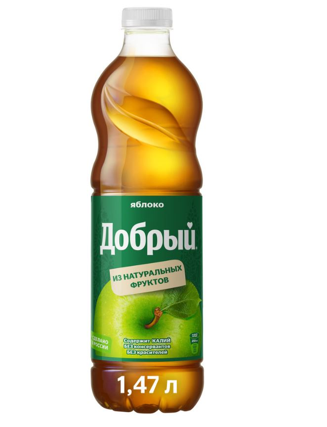 Нектар Добрый фермерские яблочки, 1.47л x 6 шт - натуральный нектар без добавления сахара, изготовленный из осветленного, восстановленного яблочного сока. Он содержит яблочную, лимонную и другие органические кислоты, которые способствуют нормальному пищеварению. Также в его состав входит калий, который необходим для работы сердца. Глюкоза и фруктоза в Добрый фермерские яблочки делают нектар таким вкусным и заряжают энергией