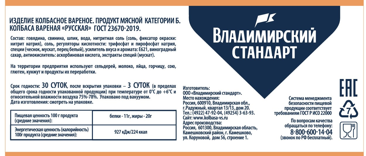 - Бренд ВЛАДИМИРСКИЙ СТАНДАРТ