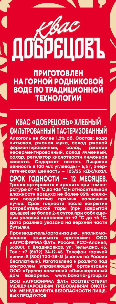 Натур��льный квас брожения, приготовленный из традиционных ингредиентов. Идеальное дополнение к любому блюду. Напиток обладает высокой энергетической ценностью. За счет углекислоты, квас способствует более легкому перевариванию, всасыванию пищи и повышает аппетит. Также продукт содержит свободные аминокислоты, сахара и микроэлементы. Используется как прохладительный напиток, а также как основа для окрошки.