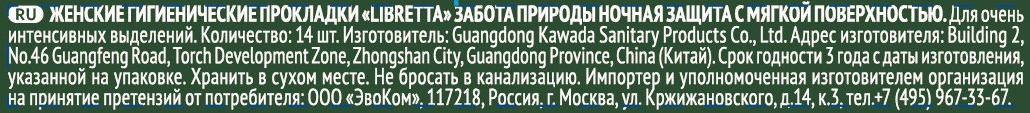 Прокладки Libretta Забота природы ночная защита, 14шт