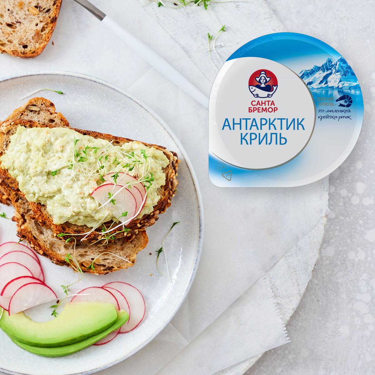 Нежная крем-паста на основе мяса дикого антарктического криля. Сочетание ароматных сочных кусочков криля и воздушного соуса с добавлением нежного пюре из авокадо, создают приятную легкость и оригинальный яркий вкус. Продукт обладает приятным легким ароматом с выраженной ноткой авокадо. Авокадо - это один из популярных видов уникального фрука. Питательный, содержит много витаминов, микроэлиментов, а также полезных жиров.