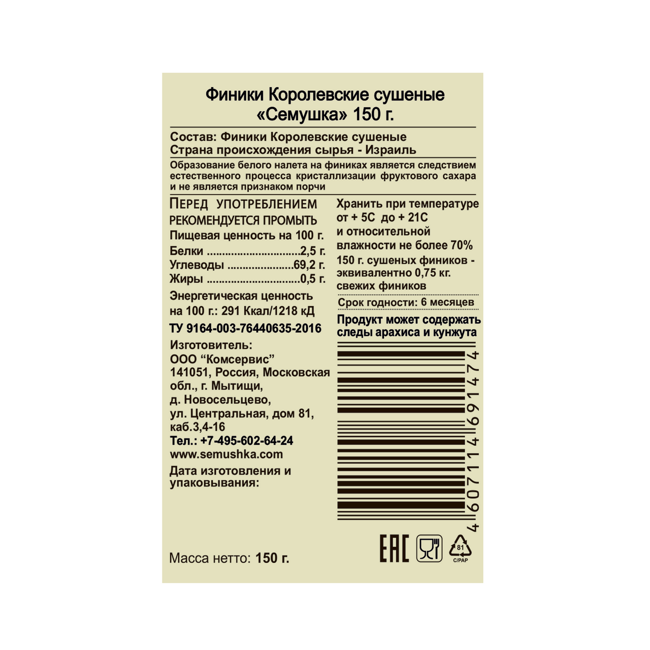 Финики Семушка королевские, 150г