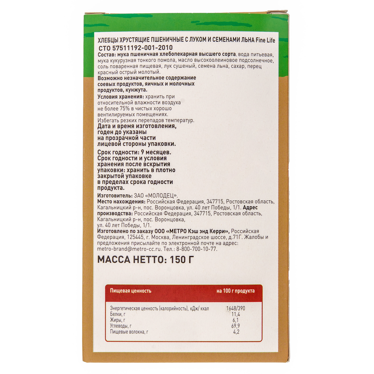 Fine Life Хлебцы пшеничные лук и семена льна, 150г