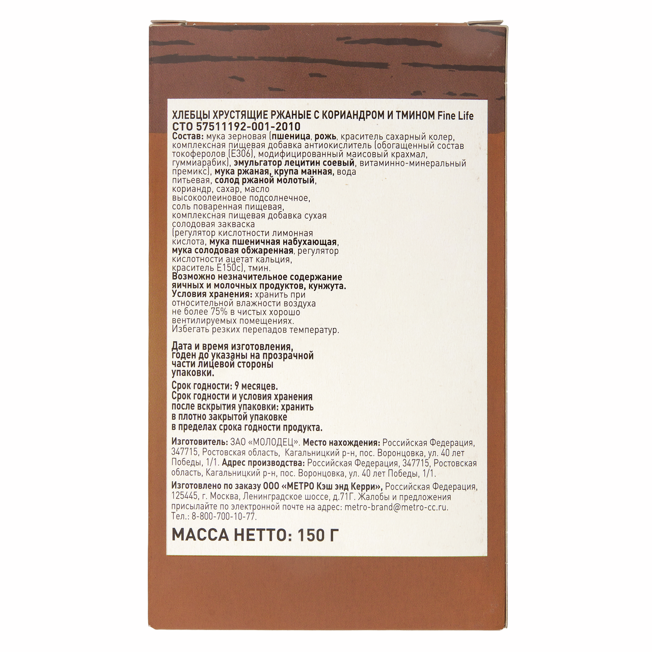 Fine Life Хлебцы ржаные кориандр и тмин, 150г