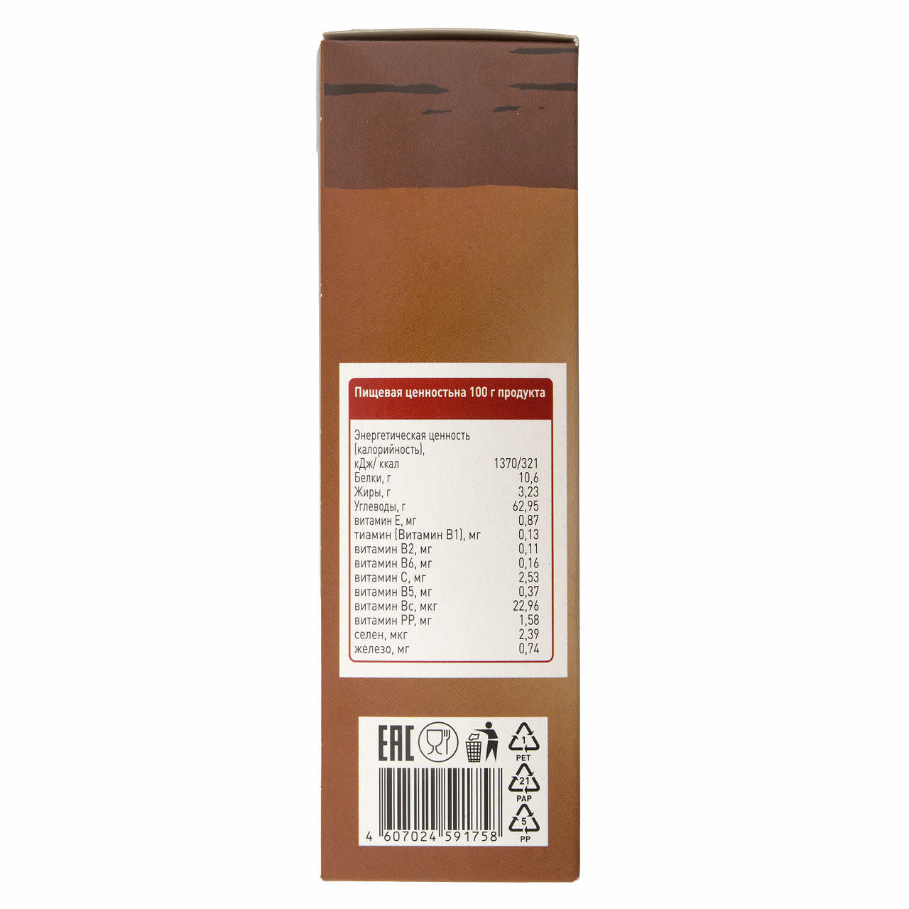 Мука зерновая (пшеница, рожь, краситель сахарный колер, комплексная пищевая добавка антиокислитель (обогащенный состав токоферолов Е306, модифицированный маисовый крахмал, гуммиарабик), эмульгатор лецитин соевый, витаминно-минеральный премикс), мука ржаная, крупа манная, вода питьевая, солод ржаной молотый, кориандр, сахар, масло высокоолеиновое подсолнечное, соль поваренная пищевая, комплексная пищевая добавка сухая солодовая закваска (регулятор кислотности лимонная кислота, мука пшеничная набухающая, мука солодовая обжаренная, регулятор кислотности ацетат кальция, краситель Е150с), тмин.