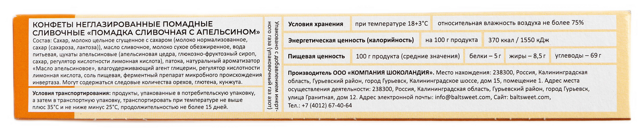 Конфеты от бренда Балтийская жемчужина - Сливочная Помадка производятся по классическому рецепту на основе сгущённого молока и сливочного масла, которые делают вкус лакомства таким нежным и сливочным, а структуру тающей. Нежная текстура классической сливочной помадки дополняется тонкими нотки ванили. Продукт обладает нежным ароматом, насыщенным, знакомым многим вкусом. Прекрасно подойдёт для подачи к детскому сладкому столу или в качестве угощения для коллег во время послеобеденного чаепития. Высокое качество продукции обеспечивается использованием натуральных продуктов. Производится по ГОСТ 4570. Без использования искусственных красителей, консервантов, пальмового масла. Помадка сохраняет свою свежесть и мягкость на протяжении всего срока годности благодаря специальной вакуумной технологии упаковки продукта, применяемой на фабрике. Используемая передовая технология упаковки дает помадке увеличенный срок хранения до 8 месяцев.