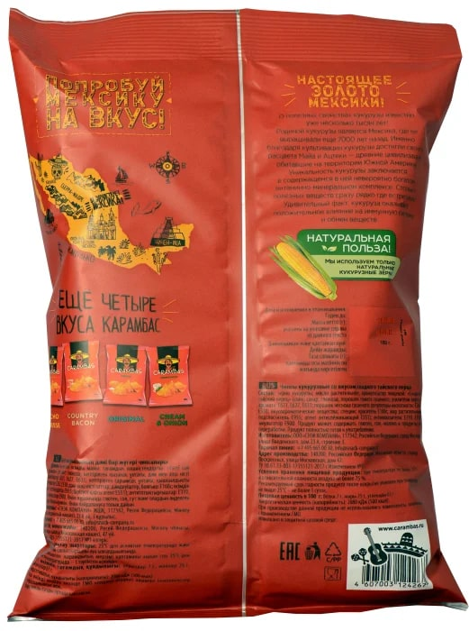 Хрустящие кукурузные чипсы со вкусом сладкого тайского перца. Основу рецептуры составляют зерно кукурузы и растительное масло. Чипсы обладают приятным вкусом и ароматом. Они отлично подходят в качестве закуски к пиву, гарнира к мясным блюдам, их можно подать с различными соусами.