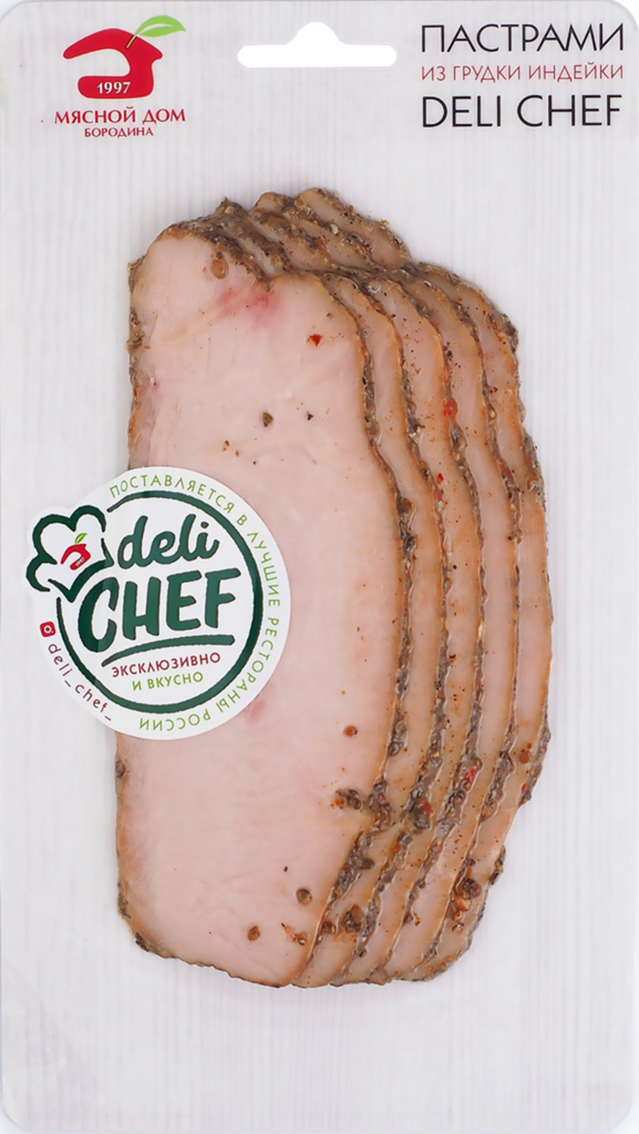 Пастрами Deli Chef из индейки копчено-вареная нарезка, ~150г