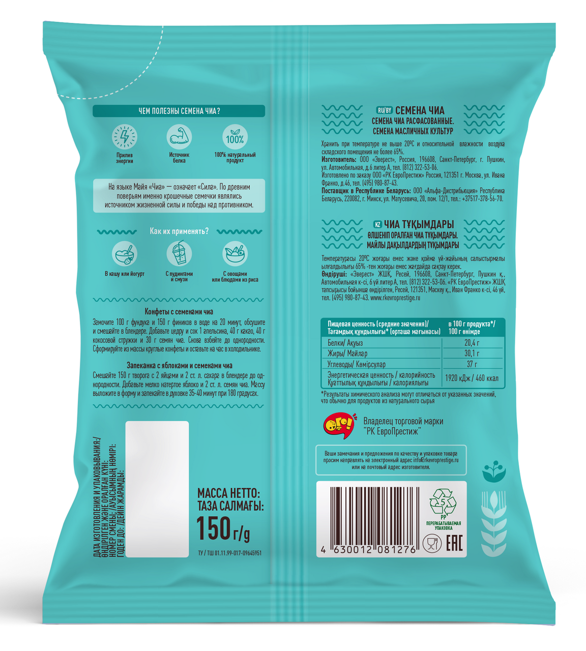 Семена Чиа поддерживает физическую выносливость, нормализует работу пищеварительной и сердечно-сосудистой систем, улучшает работу мозга, выводит токсины и шлаки.