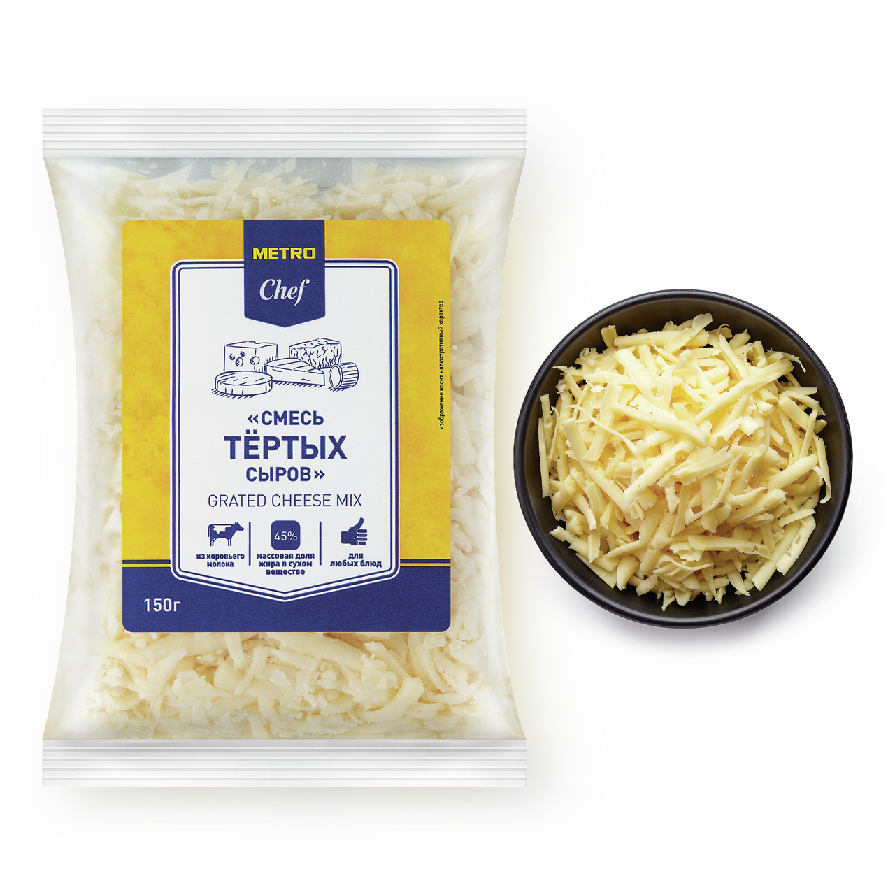 Смесь тертых сыров 45%, 150г БЗМЖ - это высококачественный продукт от известного производителя Metro Chef. Сыр в этой смеси отличается особой кремнистостью и вкусом, которые придадут вашим блюдам неповторимый аромат и вкус.