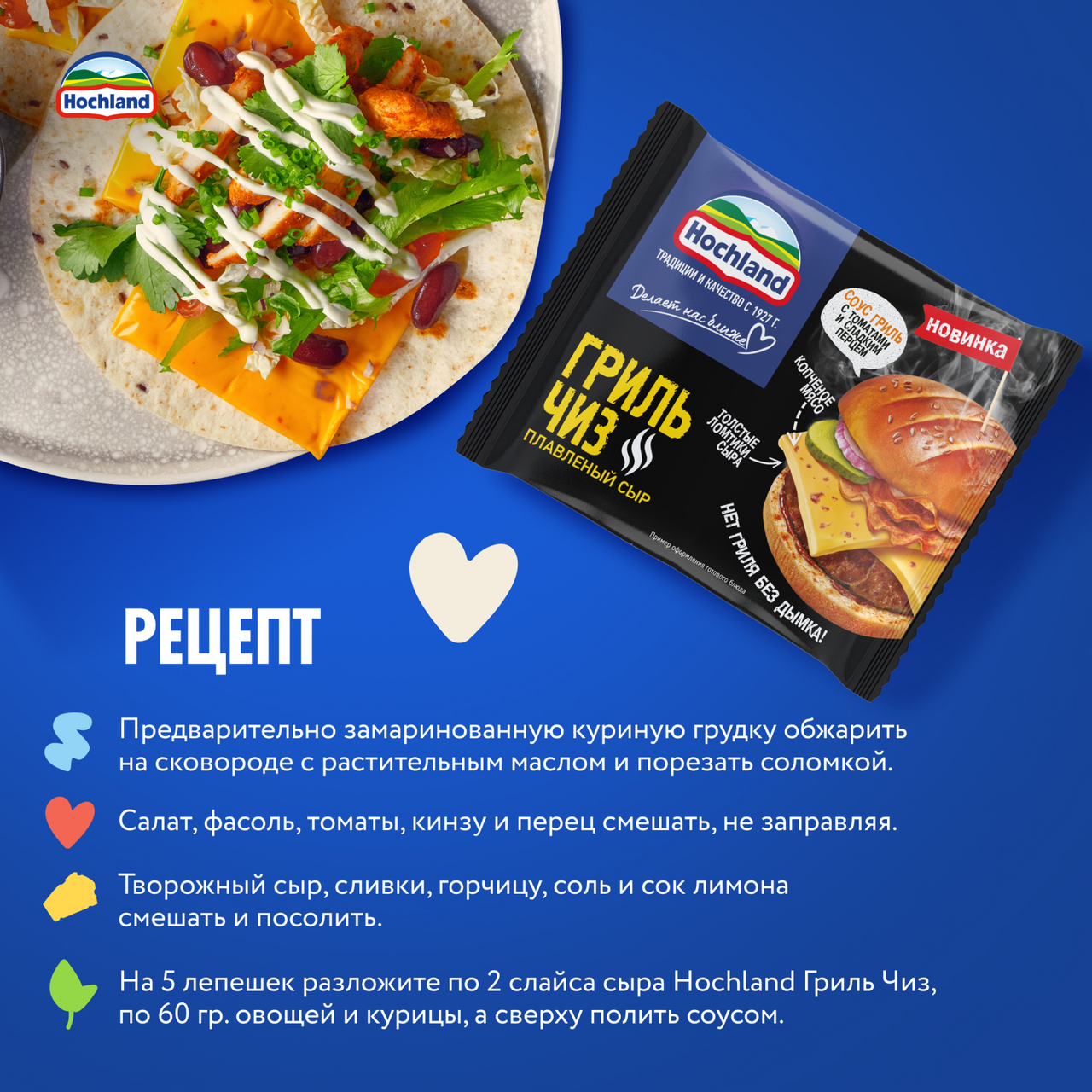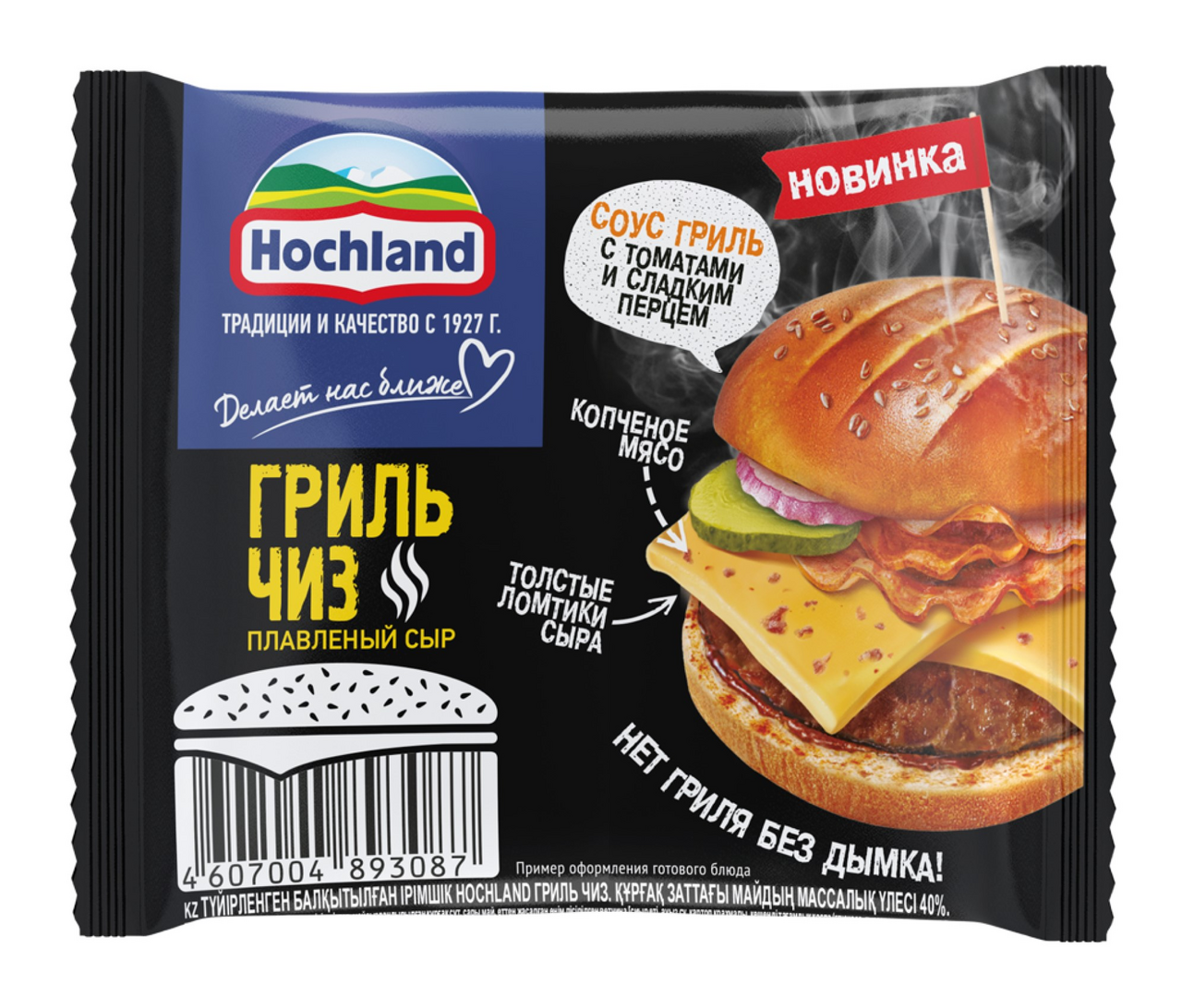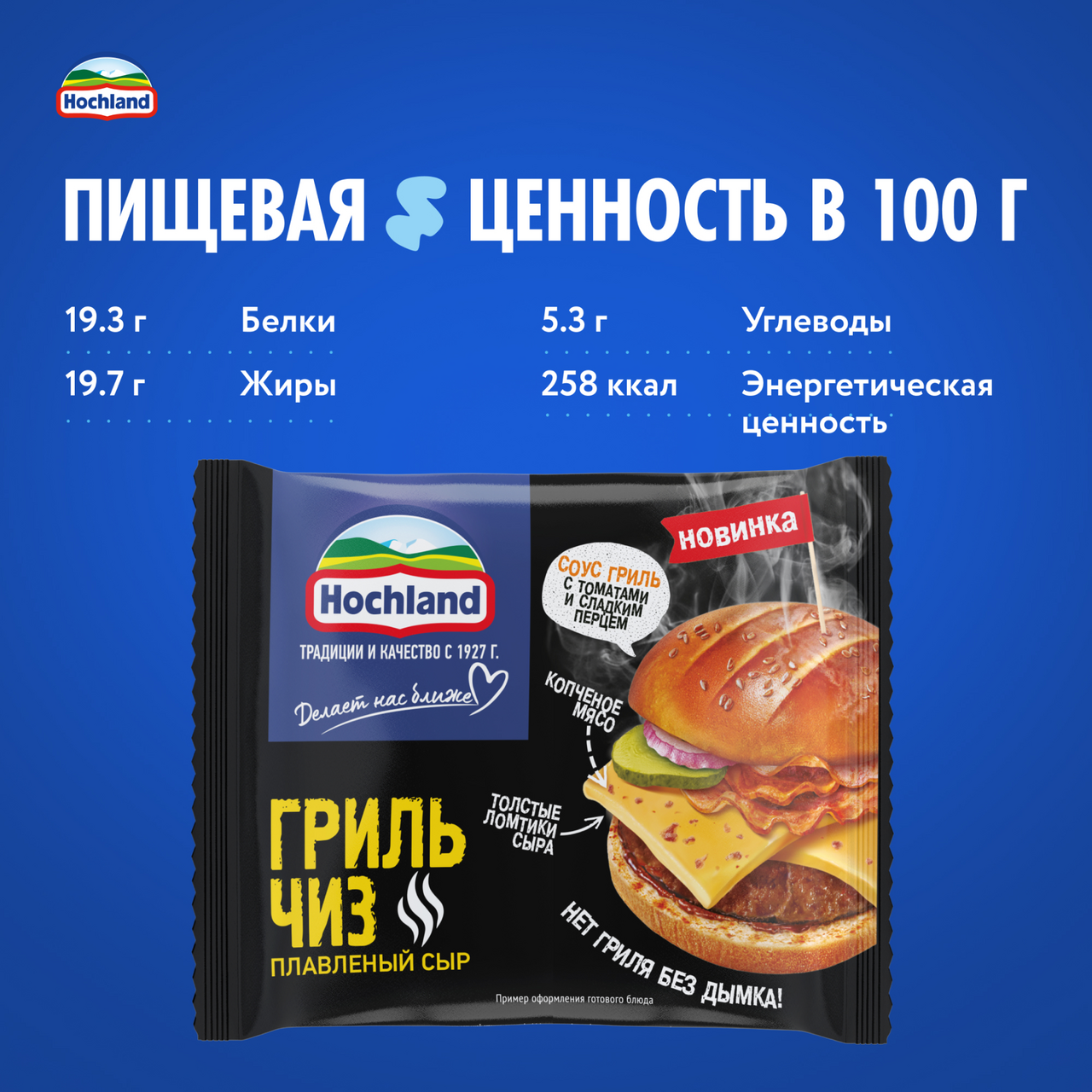 Сыр плавленый Hochland Гриль Чиз ломтевой 40%, 150г это толстые ломтики плавленого сыра с копченым мясом и соусом гриль с томатами и сладким перцем. Крупные кусочки мяса, насыщенный аромат гриля - вот что делает этот сыр особенно аппетитным. Вкусно и в бургер, и на бутерброд!