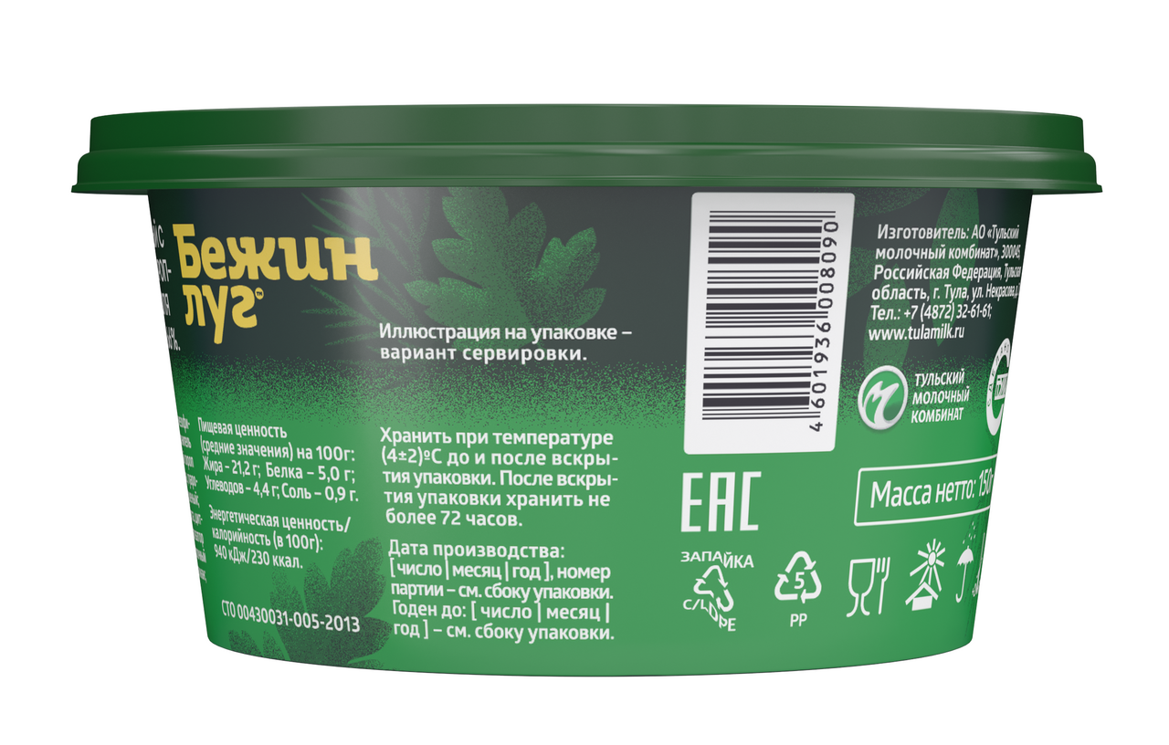 Сыр творожный Бежин луг чеснок-укроп-петрушка, 150г