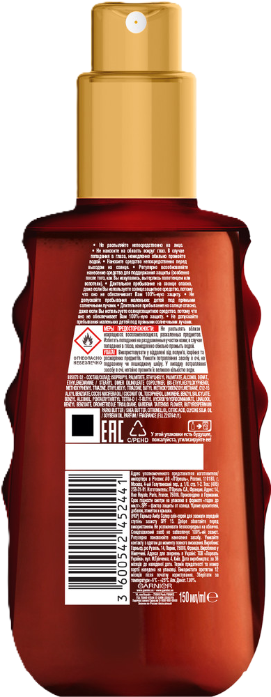 Масло-спрей для загара Garnier Ambre Solaire солнцезащитное SPF15, 150мл