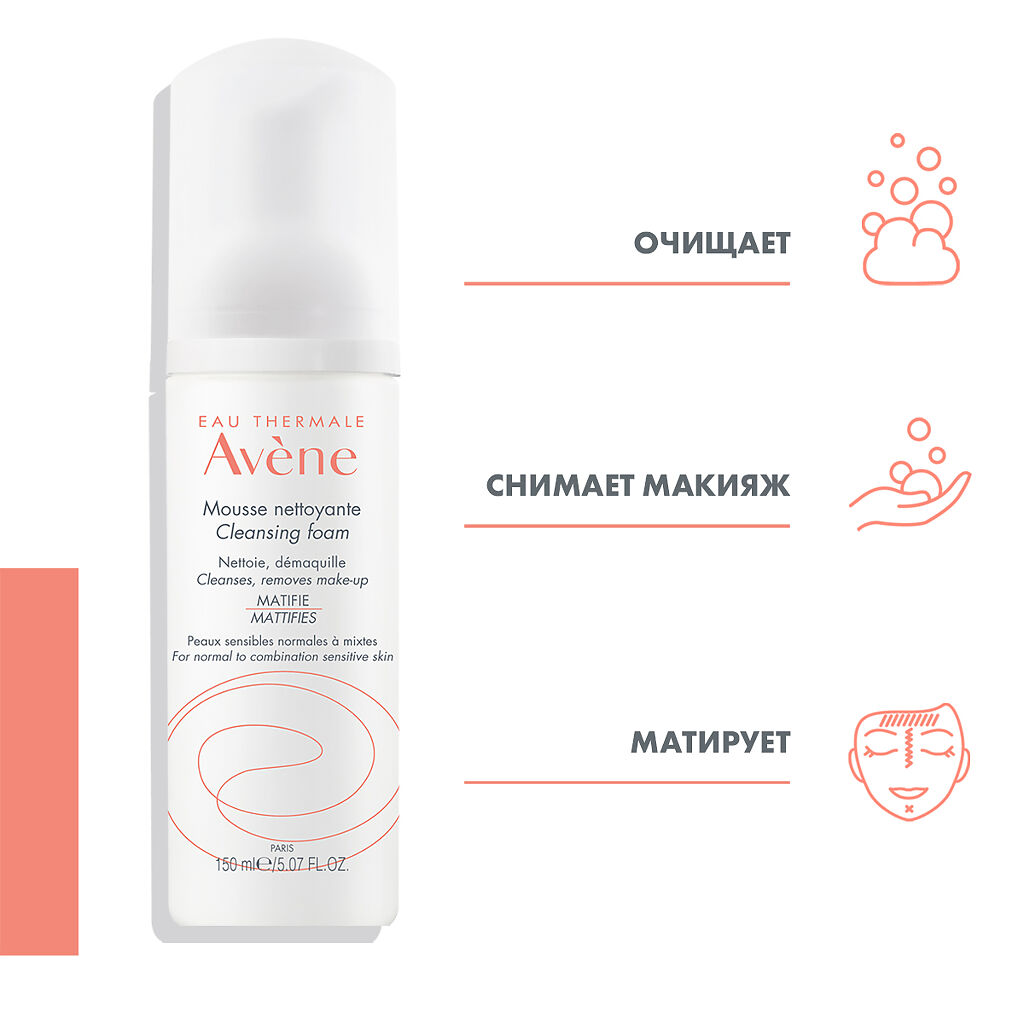 Пенка для снятия макияжа Avene очищающая, 150мл