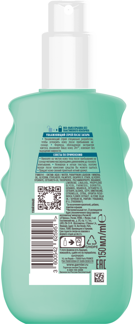 Спрей после загара Garnier Ambre Solaire с экстрактом кактуса, 150мл