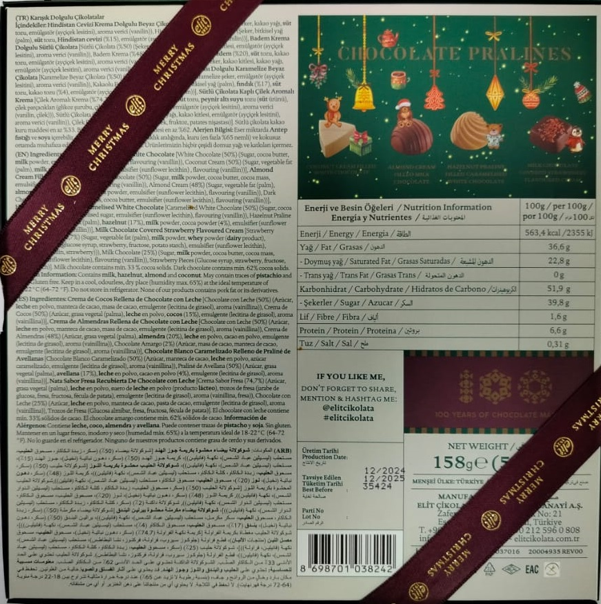 Ассорти шоколадных конфет из качественного шоколада в роскошной новогодней упаковке - прекрасный подарок к Новому года как мужчине, так и женщине. Можно употреблять в качестве десерта к чаю и кофе.