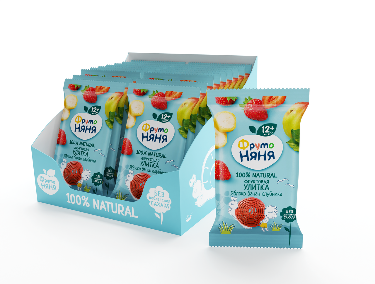 Кусочки фруктовые детские ФрутоНяня Улитки Яблоко, клубника и банан с 12 месяцев, 15г