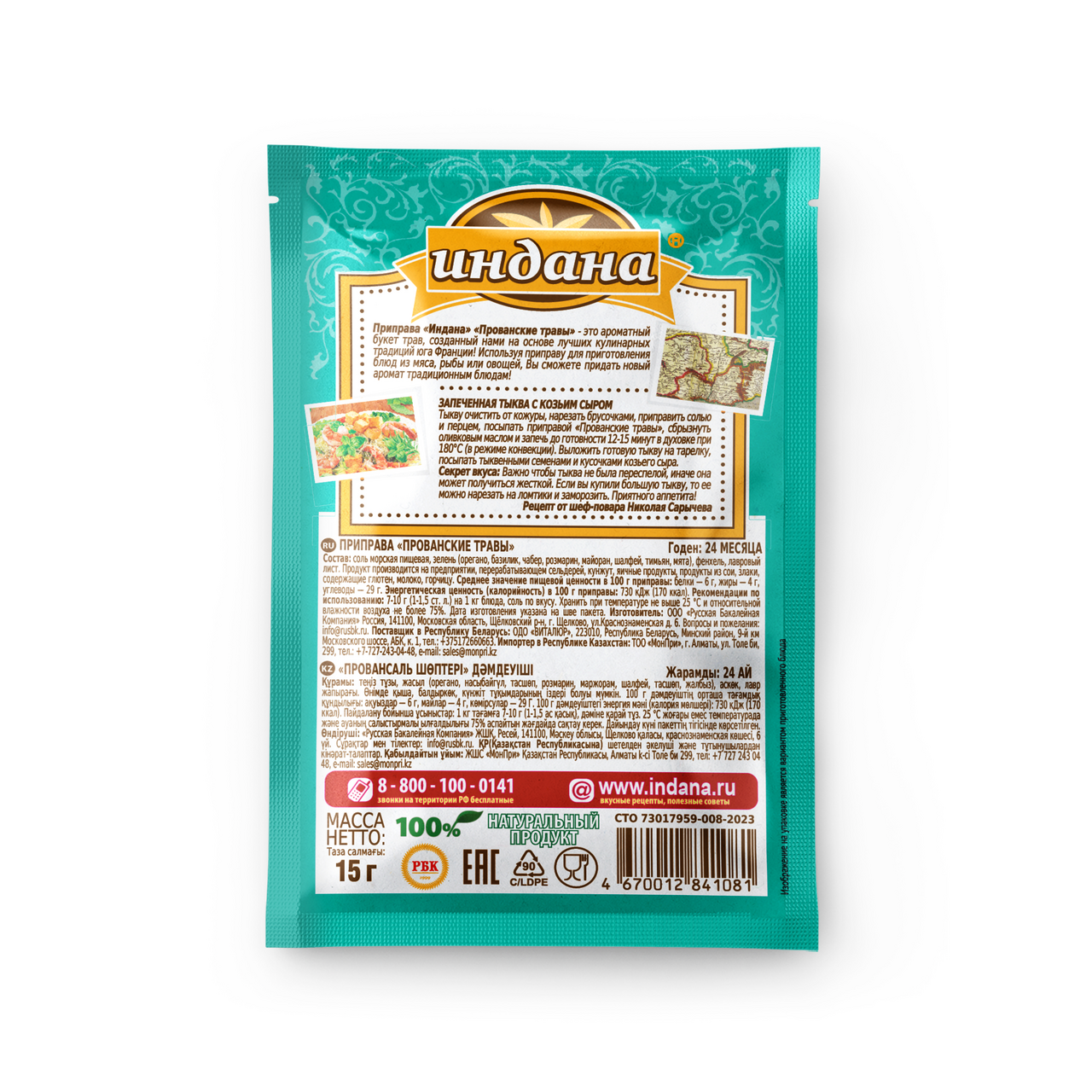 Соль морская поваренная пищевая садочная, зелень (орегано, базилик, чабер, розмарин, майоран, шалфей, тимьян, мята), фенхель, лавровый лист.