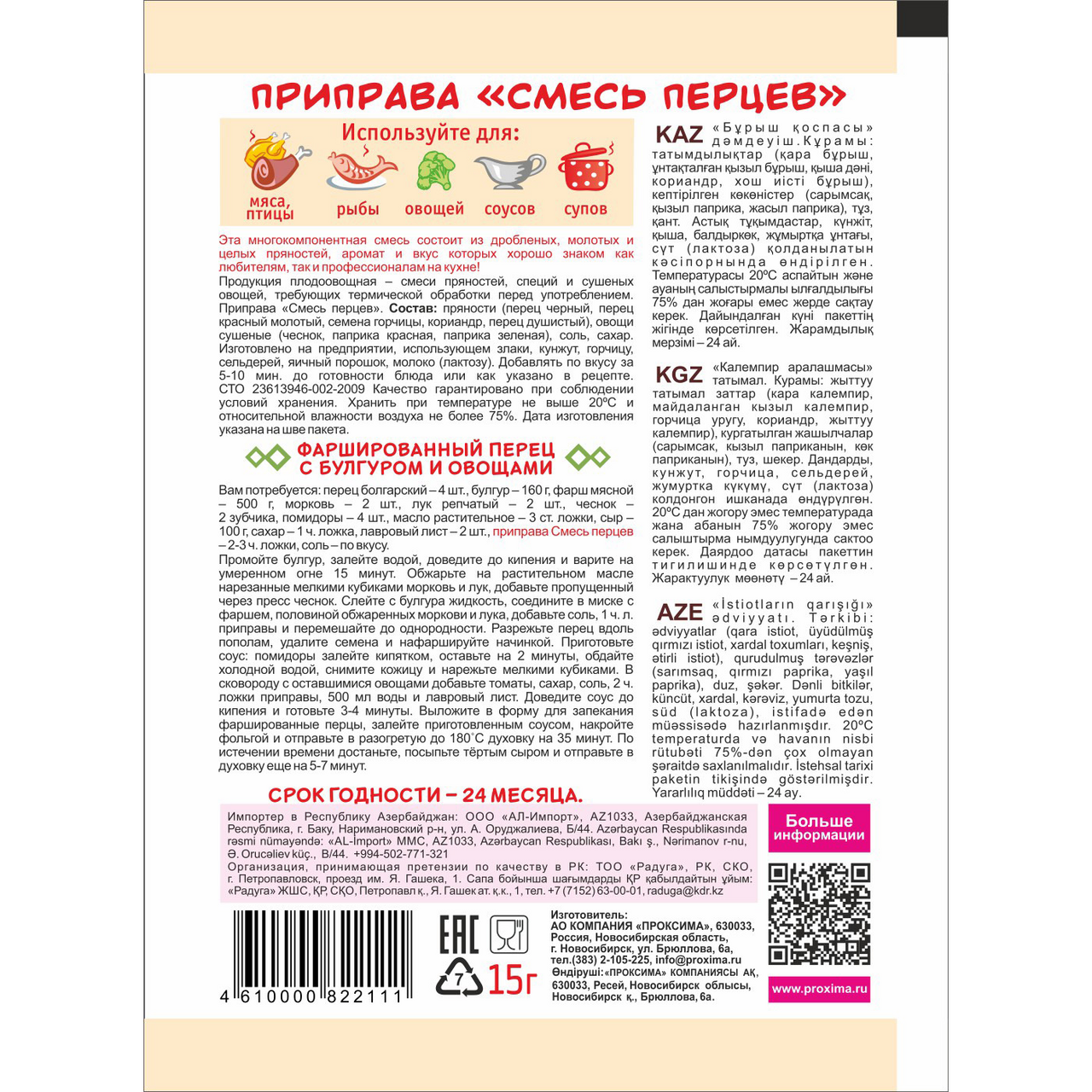Пряности (перец черный, перец красный молотый, семена горчицы, кориандр, перец душистый), овощи сушеные (чеснок, паприка красная, паприка зеленая), соль, сахар.