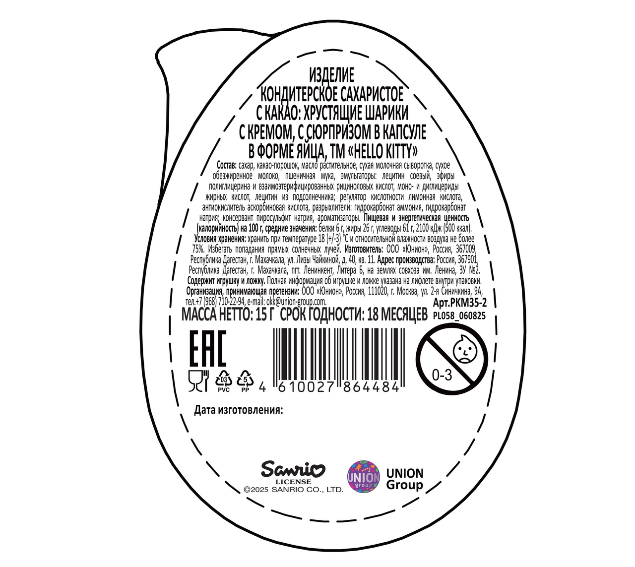 Яйцо Hello Kitty с кремом и игрушкой, 15г x 20 шт - идеальный сюрприз для девочек. Хрустящие печеньки с нежным кремом и игрушкой внутри. В каждом яйце - яркая 3D-фигурка насадка на карандаш.Коллекция из 10 стилизованных 3D игрушек - зверюшки малыши из серии Мини зоопарк Hello Kitty. У каждой из них - свой стиль и свой характер: Леопард, Пантера, Зебра, Обезьяна, Слоника, Жирафик, Ёжик, Мишка, Кошечка и Тигренок. Удобный перекус - в каждом яйце есть ложечка. Соберите свой мини зоопарк и насладитесь вкусным десертом.