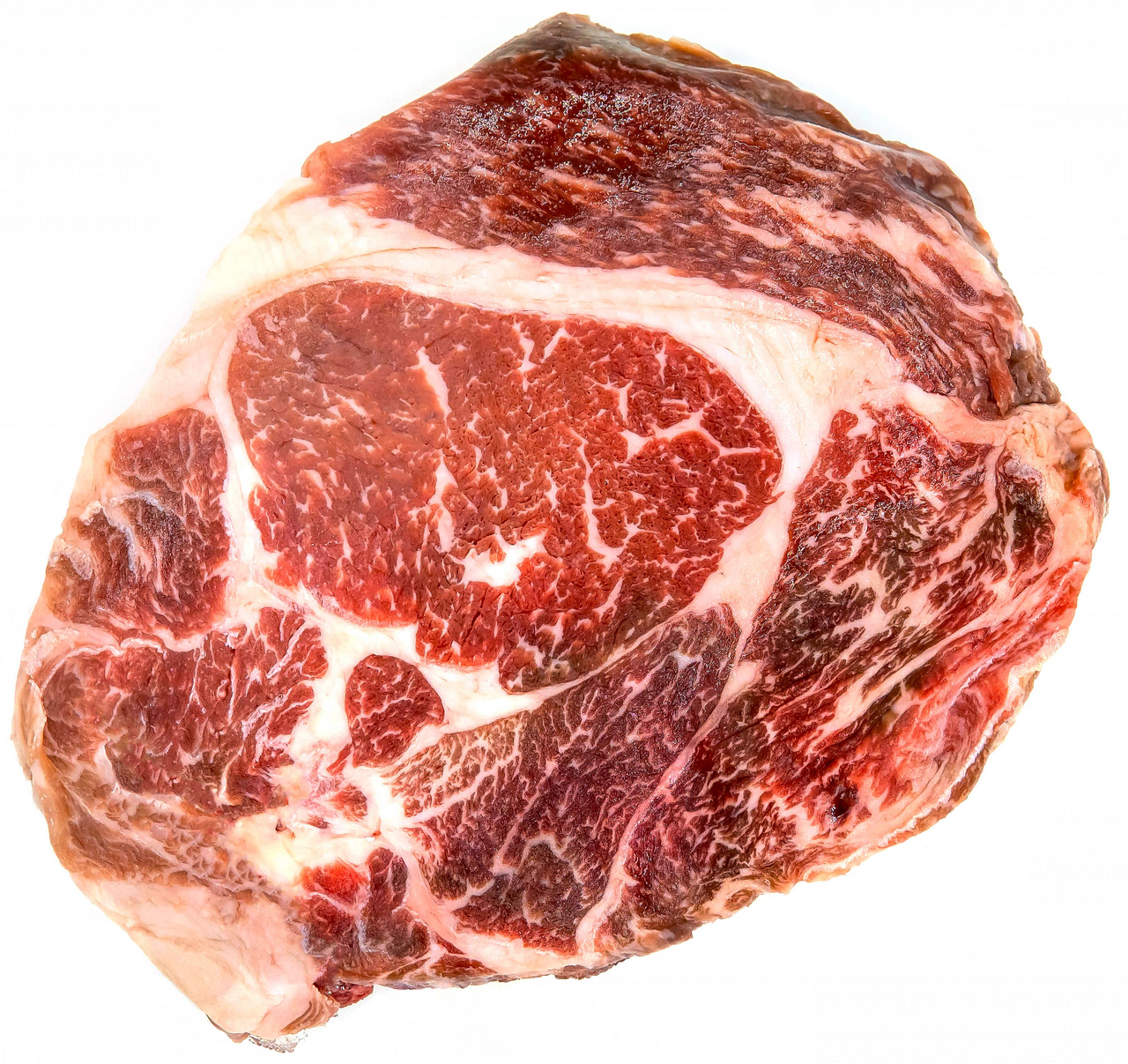 Кусок мясной мякоти, полученный из начальной части длиннейшей мышцы спины, отделенный между 5-м и 10-м ребром. Он ценится за свою сочность и исключительные вкусовые качества. Мясо для рибая вырезается из спинной части отруба. Оно богато жировыми прослойками, которые и придают ту самую мраморность говядине. При нагревании они тают, смягчают мясо и дарят ему невероятный насыщенный вкус. Рибай универсален. Он подойдет для приготовления на сковороде, мангале и гриле. Стейк необходимо сначала обжарить на сильном огне до появления корочки, а затем снизить температуру и довести мясо до готовности. Оптимальная степень прожарки для рибая - Medium. За 5 минут до подачи оберните стейк фольгой и дайте ему потомиться в собственном соку.