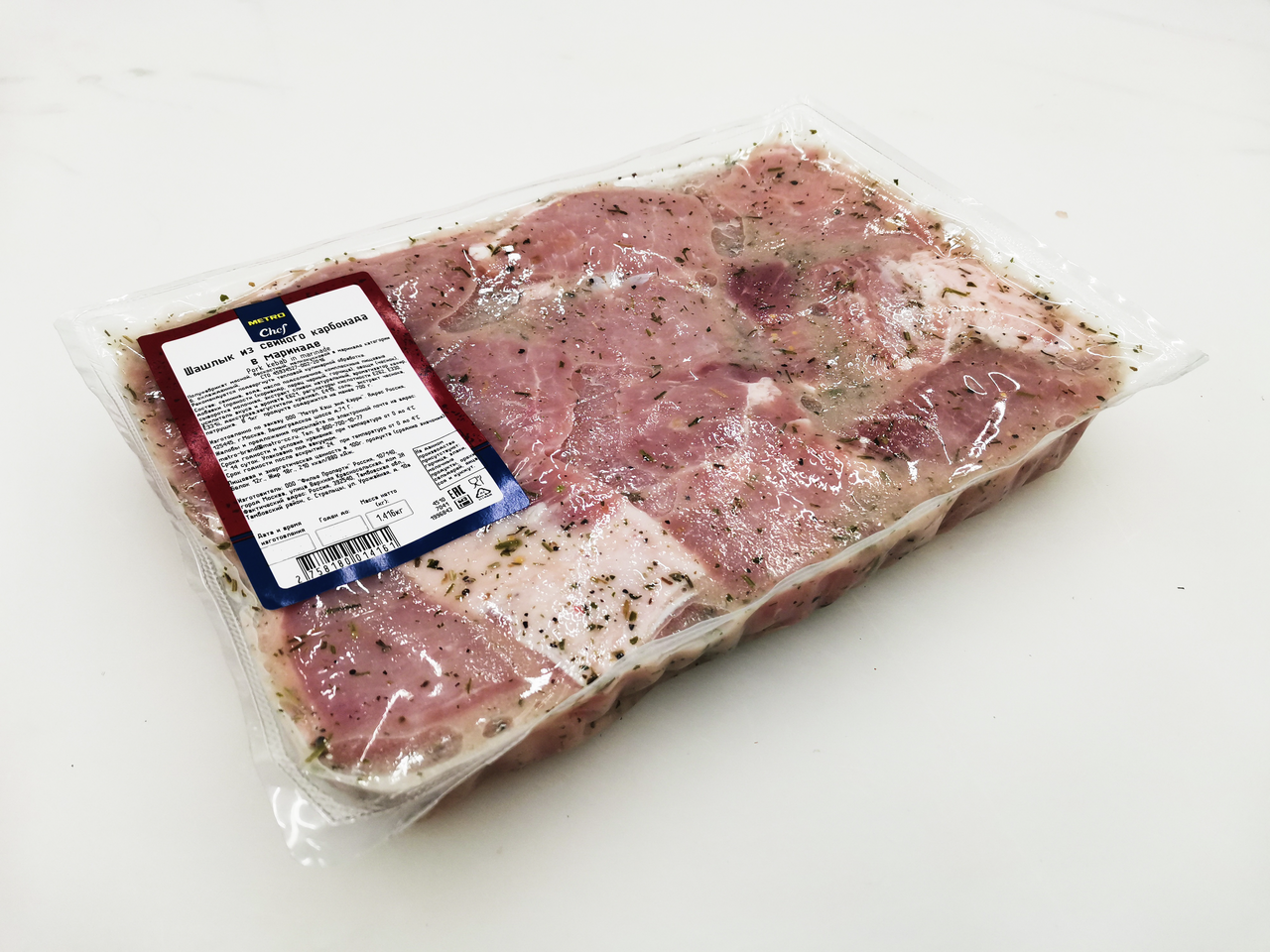 Шашлык из свиного карбонада в маринаде в вакуумной упаковке полностью готов к приготовлению. Удобно использовать и дома, и на природе. Сочный и насыщенный полуфабрикат для жарки на углях. Диетическое мясо обязательно придется по вкусу гостям пикника и подарят отличное настроение. Шашлык из свиного карбоната в маринаде приготовлен с использованием натуральных пряностей и специй.