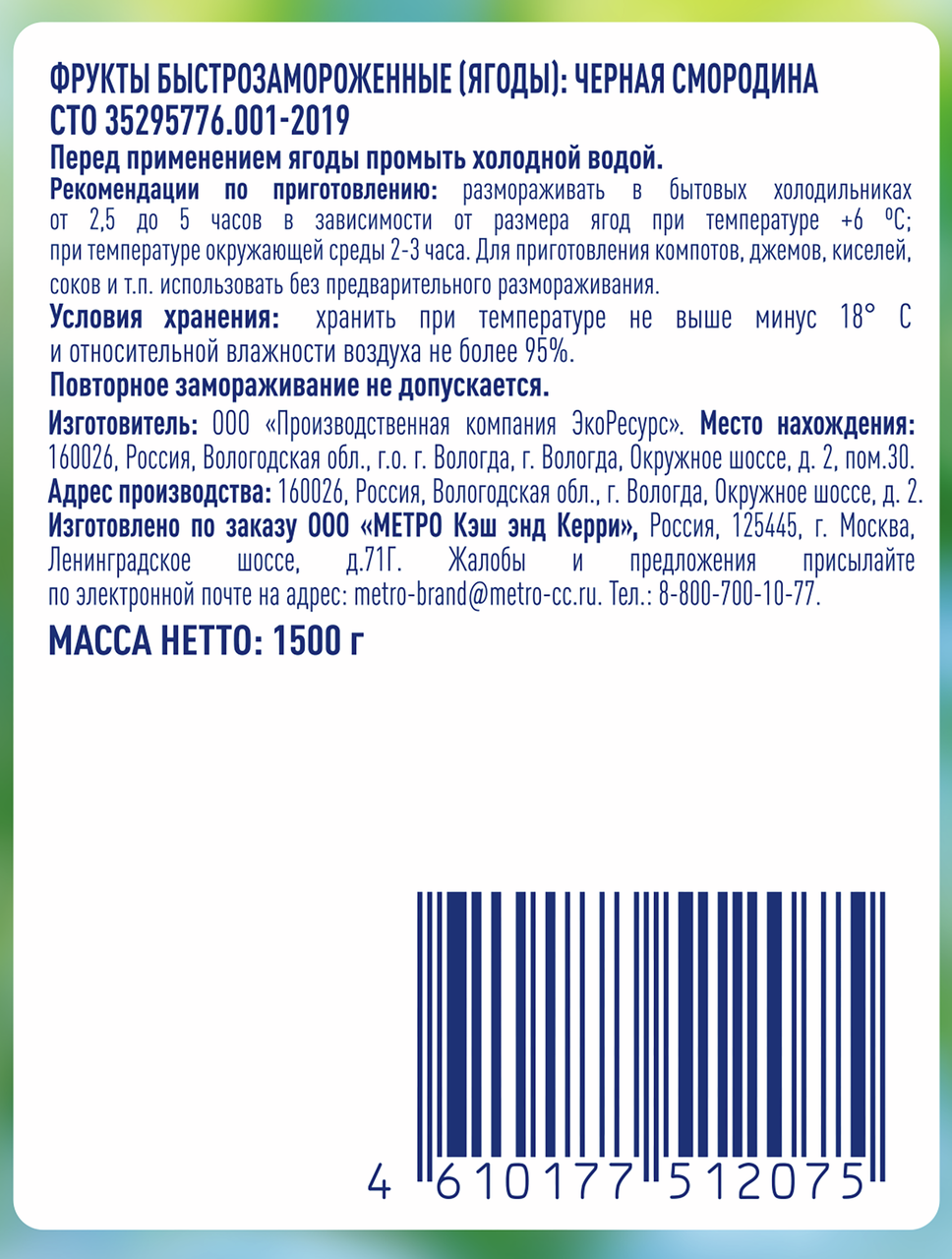 METRO Chef Смородина черная замороженная, 1.5кг