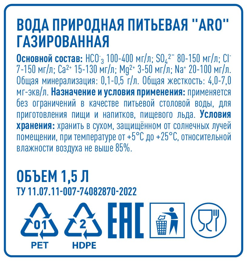 Aro Вода природная питьевая газированная, 1.5л x 6шт байкальская глубинная газированная с глубины 400м, насыщенна кислородом, слабой минерализации, естественный РН 7,4, подходит для ежедневного потребления.