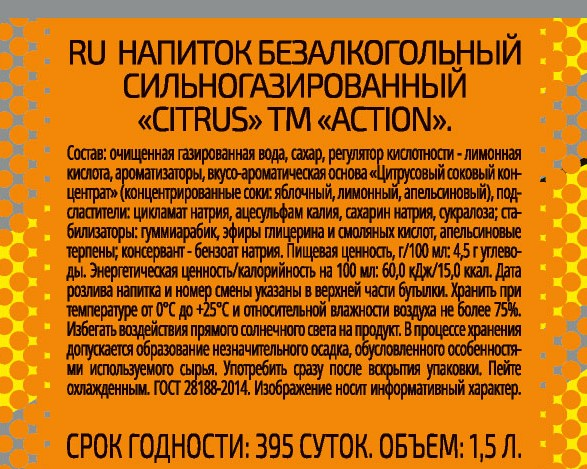 Напиток Action Цитрус газированный, 1.5л