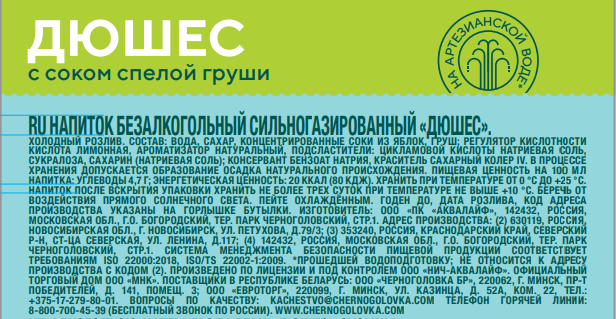 Дюшес от Черноголовки – десертный вкус в линейке легендарных лимонадов. В рецепт этого превосходного вкуса входят артезианская вода и натуральный сироп-настой южной груши сорта Дюшес. Сладкий вкус и легкая кислинка лимонада вызывают теплую улыбку. Попробуйте лимонад от Черноголовки и окунитесь в моменты искренней радости!