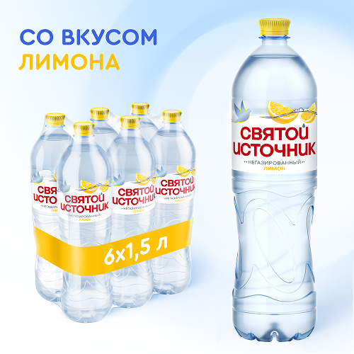 Вода Святой Источник питьевая негазированная лимон, 1.5л x 6 шт