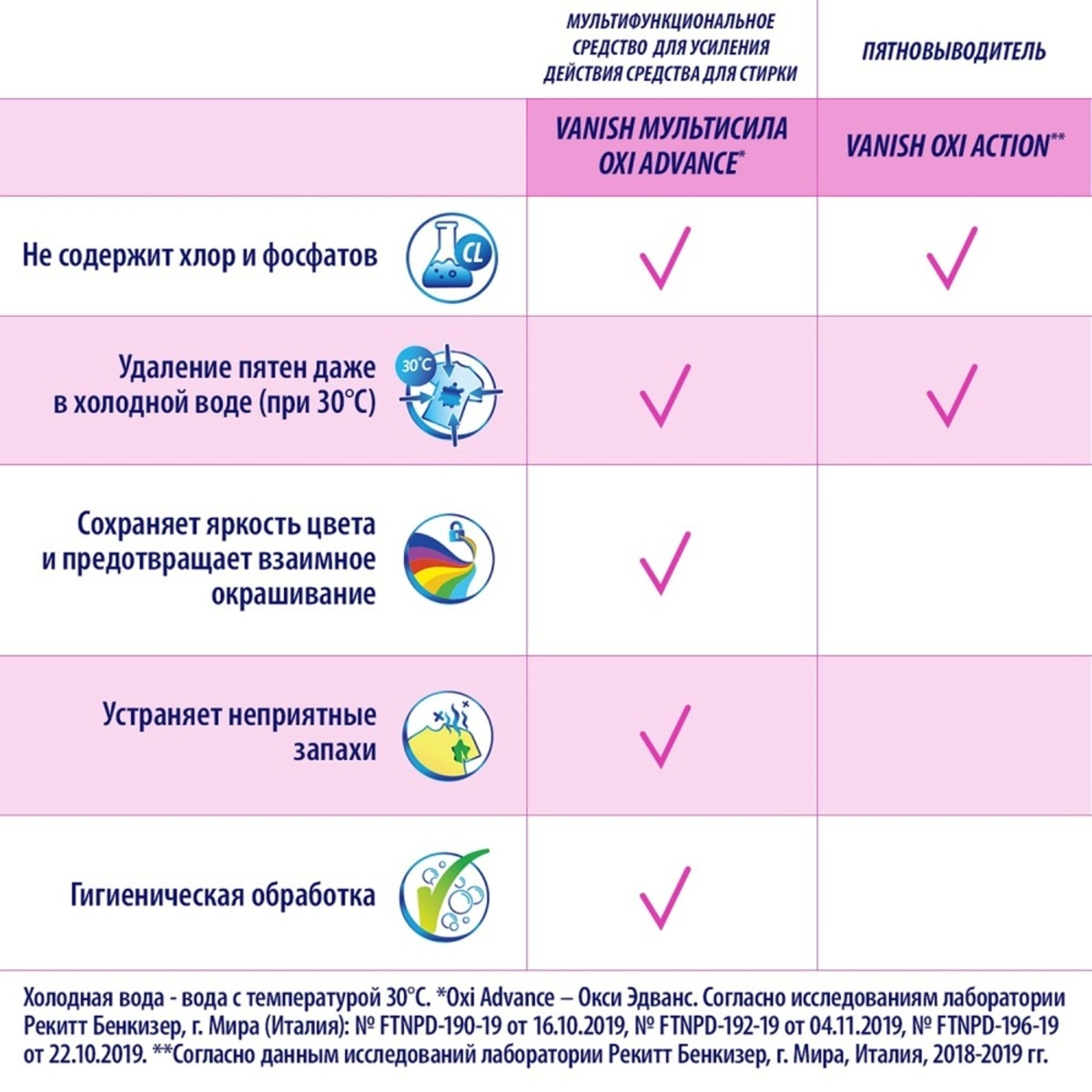 Vanish Мультисила – новое мультифункциональное средство без хлора для усиления качества стирки цветных тканей. Теперь Ваниш не только эффективно удаляет пятна, но и предотвращает окрашивание ткани, избавляет от неприятного запаха и производит гигиеническую обработку! Ваниш Мультисила – одно решение трех проблем! Продли жизнь любимым вещам с Vanish!