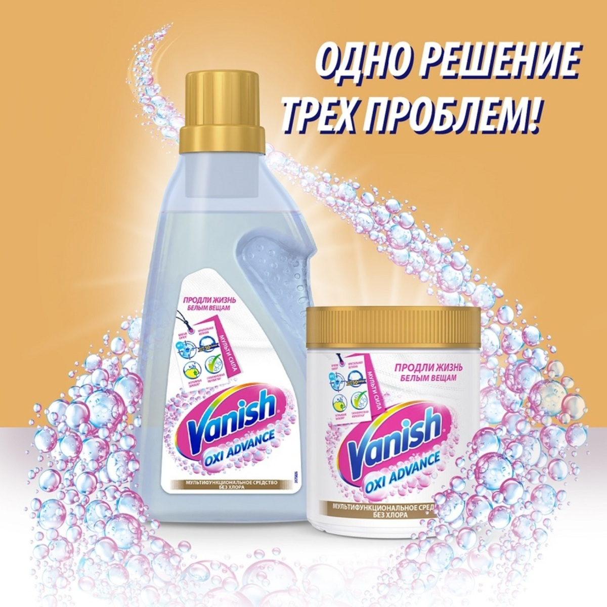 Vanish Мультисила – новое мультифункциональное средство без хлора для усиления качества стирки белых тканей. Теперь Ваниш не только эффективно удаляет пятна, но и сохраняет белизну вещей даже после 50 стирок, избавляет от неприятного запаха и производит гигиеническую обработку! Ваниш Мультисила – одно решение трех проблем! Продли жизнь любимым вещам с Vanish!